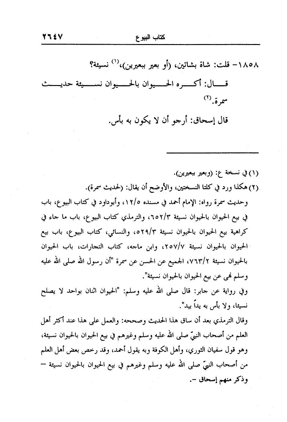 [1858-] قلت: شاة بشاتين، (أو بعير ببعيرين) ،1 نسيئة؟