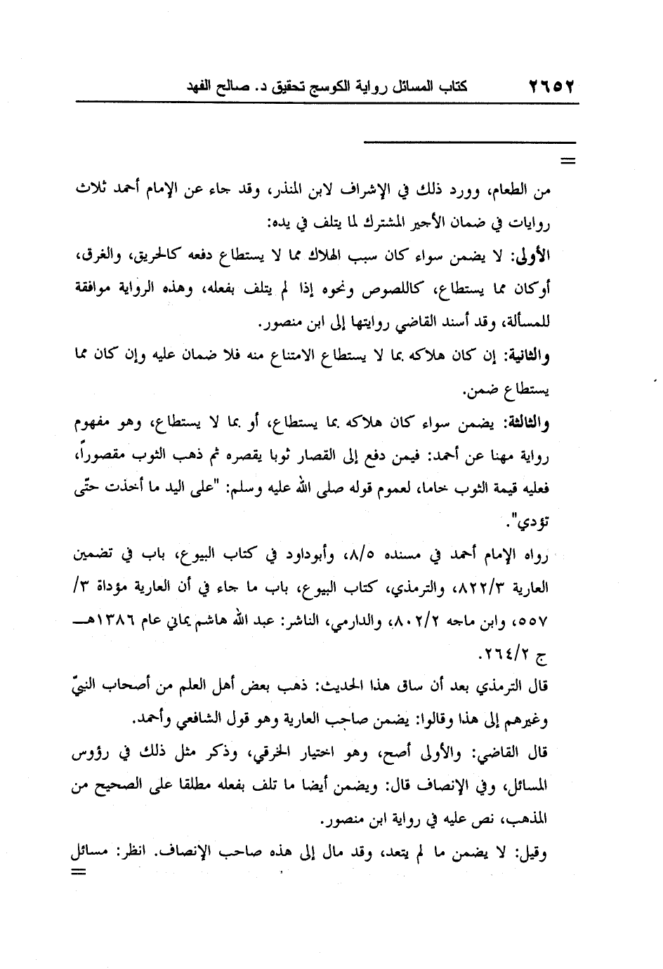 رواه الإمام أحمد في مسنده 5/8، وأبوداود في كتاب البيوع، باب في تضمين العارية 3/822، والترمذي، كتاب البيوع، باب ما جاء في أن العارية مؤداة 3/557، وابن ماجه 2/802، والدارمي، الناشر: عبد الله هاشم يماني عام 1386هـ ج 2/264.