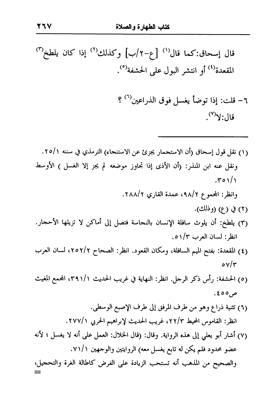 قال إسحاق: كما قال1 [ع-2/ب] وكذلك2 إذا كان يلطخ3 المقعدة4 أو انتشر البول على الحشفة5.