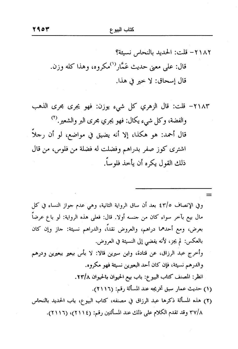2 هذه المسألة ذكرها عبد الرزاق في مصنفه، كتاب البيوع، باب الحديد بالنحاس 8/37 وقد تقدم الكلام على ذلك عند المسألتين رقم: (2114) ، (2116) .