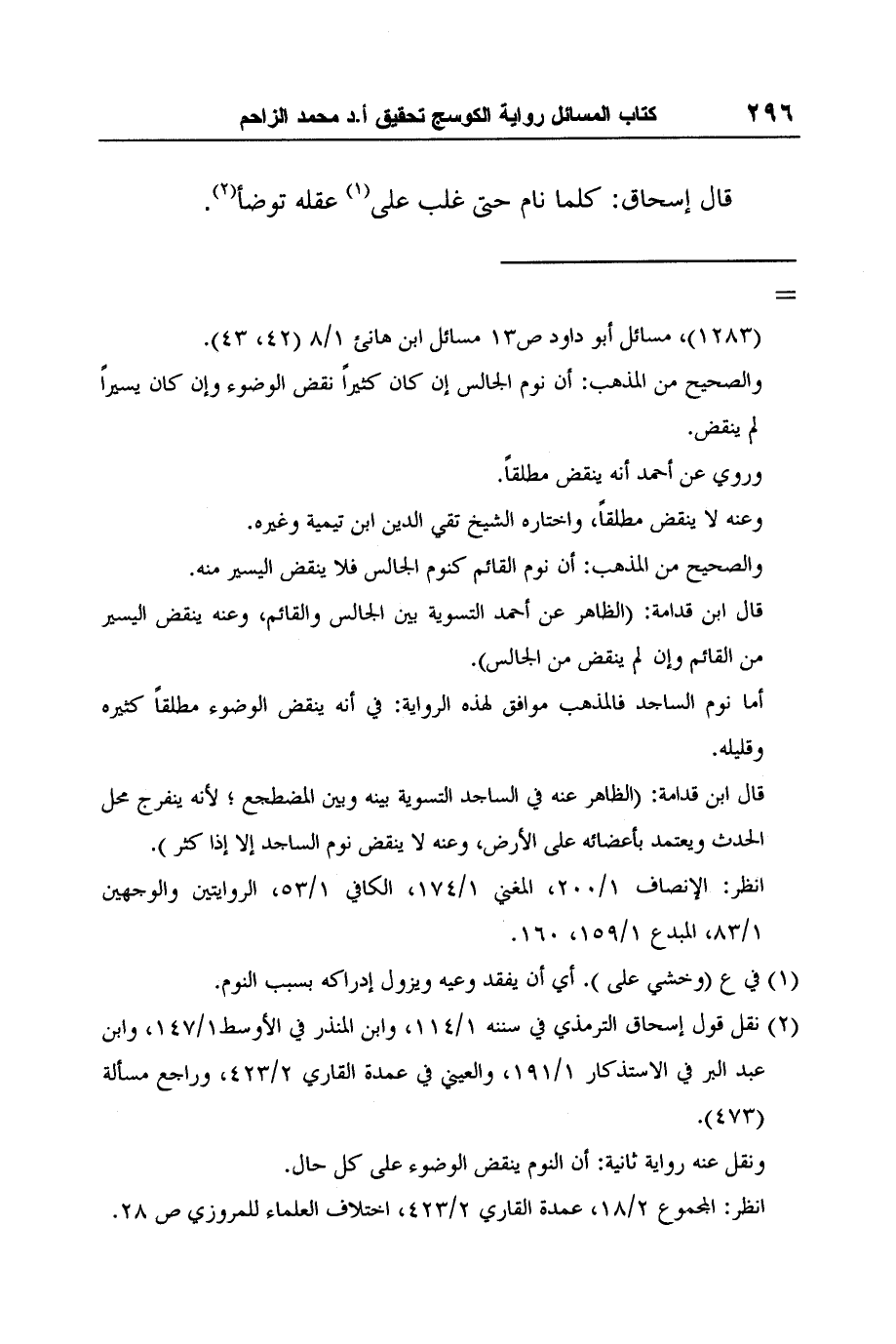 2 نقل قول إسحاق الترمذي في سننه 1/114، وابن المنذر في الأوسط1/147، وابن عبد البر في الاستذكار 1/191، والعيني في عمدة القاري 2/423، وراجع مسألة (473) .
