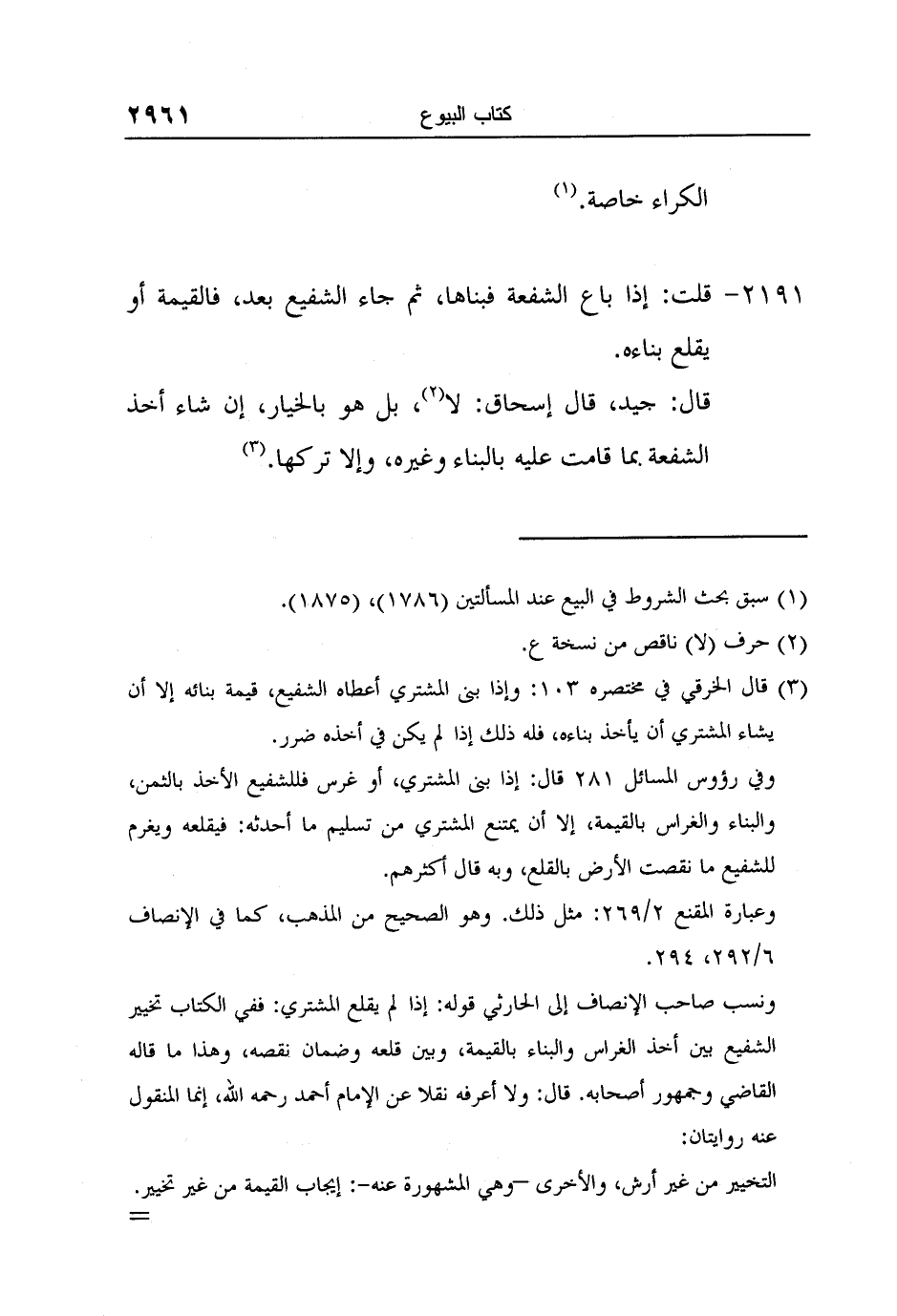 3 قال الخرقي في مختصره 103: وإذا بنى المشتري أعطاه الشفيع، قيمة بنائه إلا أن يشاء المشتري أن يأخذ بناءه، فله ذلك إذا لم يكن في أخذه ضرر.