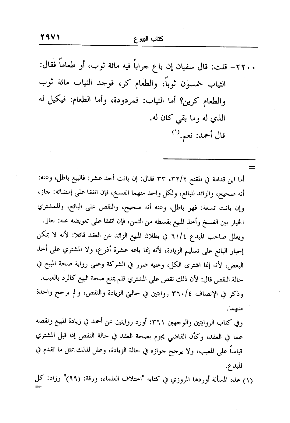 1 هذه المسألة أوردها المروزي في كتابه "اختلاف العلماء، ورقة: (99) " وزاد: كل ما كان شيئا متفرقاً فزاد: فهو مردود، وأما الكيل، والوزن إن زاد أو نقص: يترادان، وهو قول أحمد وأبي ثور.