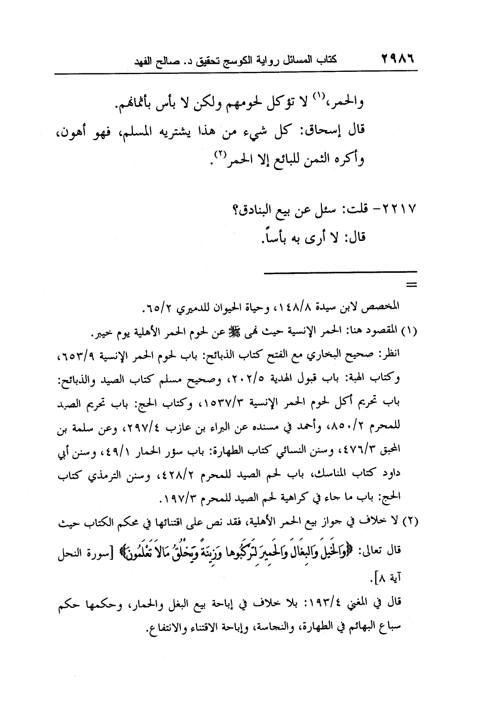 1 المقصود هنا: الحمر الإنسية حيث نهى صلى الله عليه وسلم عن لحوم الحمر الأهلية يوم خيبر.