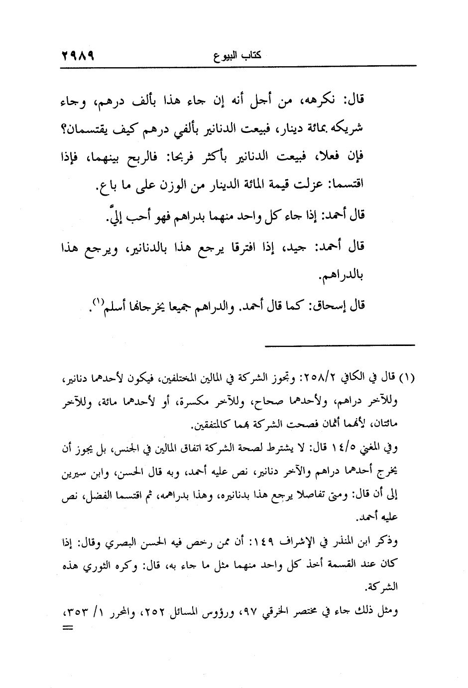 1 قال في الكافي 2/258: وتجوز الشركة في المالين المختلفين، فيكون لأحدهما دنانير، وللآخر دراهم، ولأحدهما صحاح، وللآخر مكسرة، أو لأحدهما مائة، وللآخر مائتان، لأنهما أثمان فصحت الشركة بهما كالمتفقين.