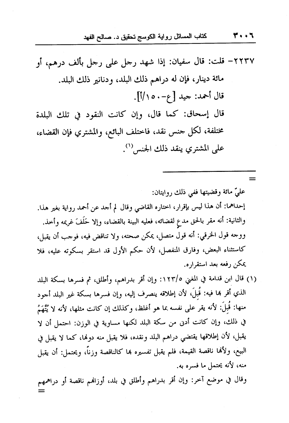 [2237-] قلت: قال سفيان: إذا شهد رجل على رجل بألف درهم، أو مائة دينار، فإن له دراهم ذلك البلد، ودنانير ذلك البلد.