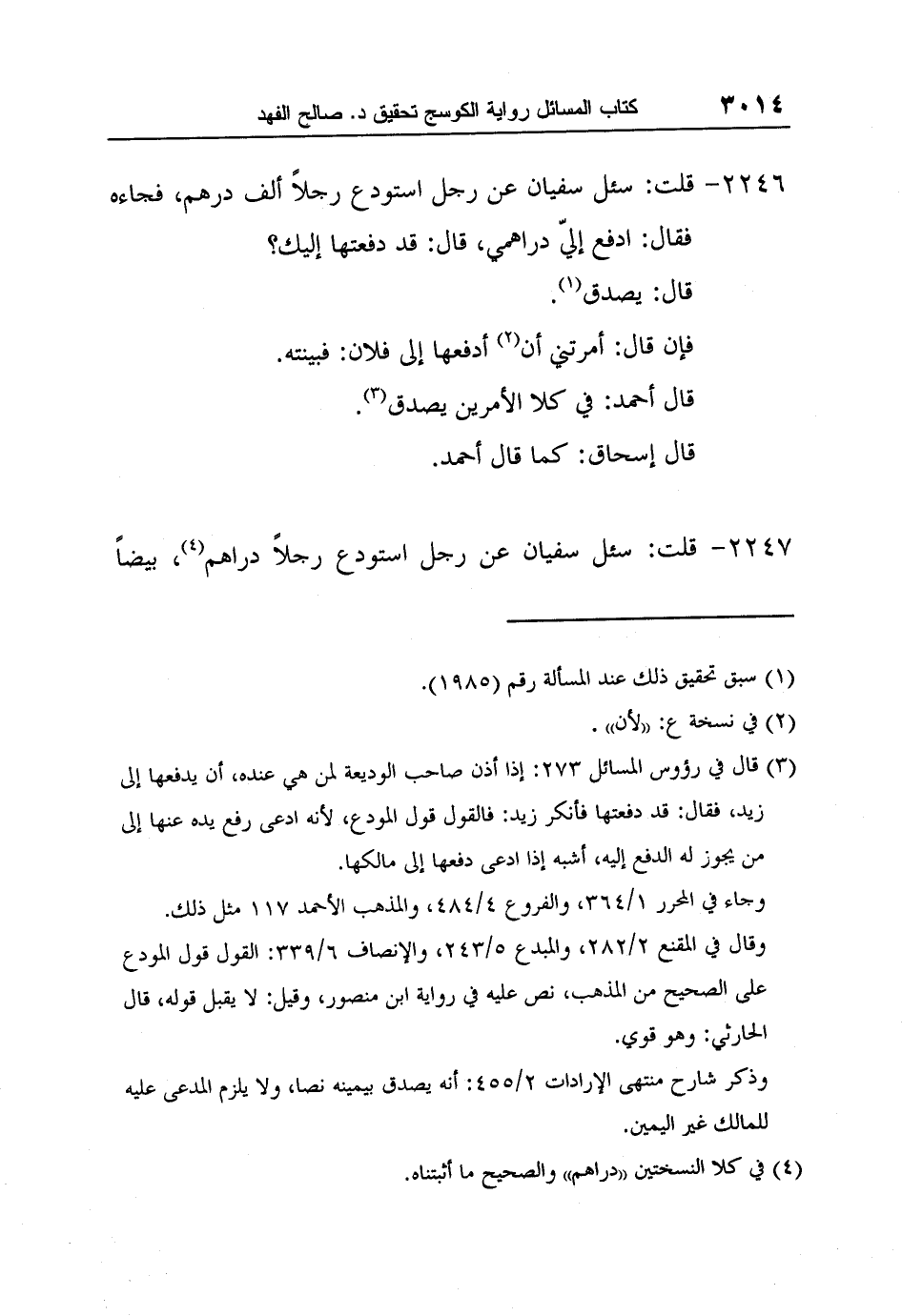 [2247-] قلت: سئل سفيان عن رجل استودع رجلاً دراهم4، بيضاً