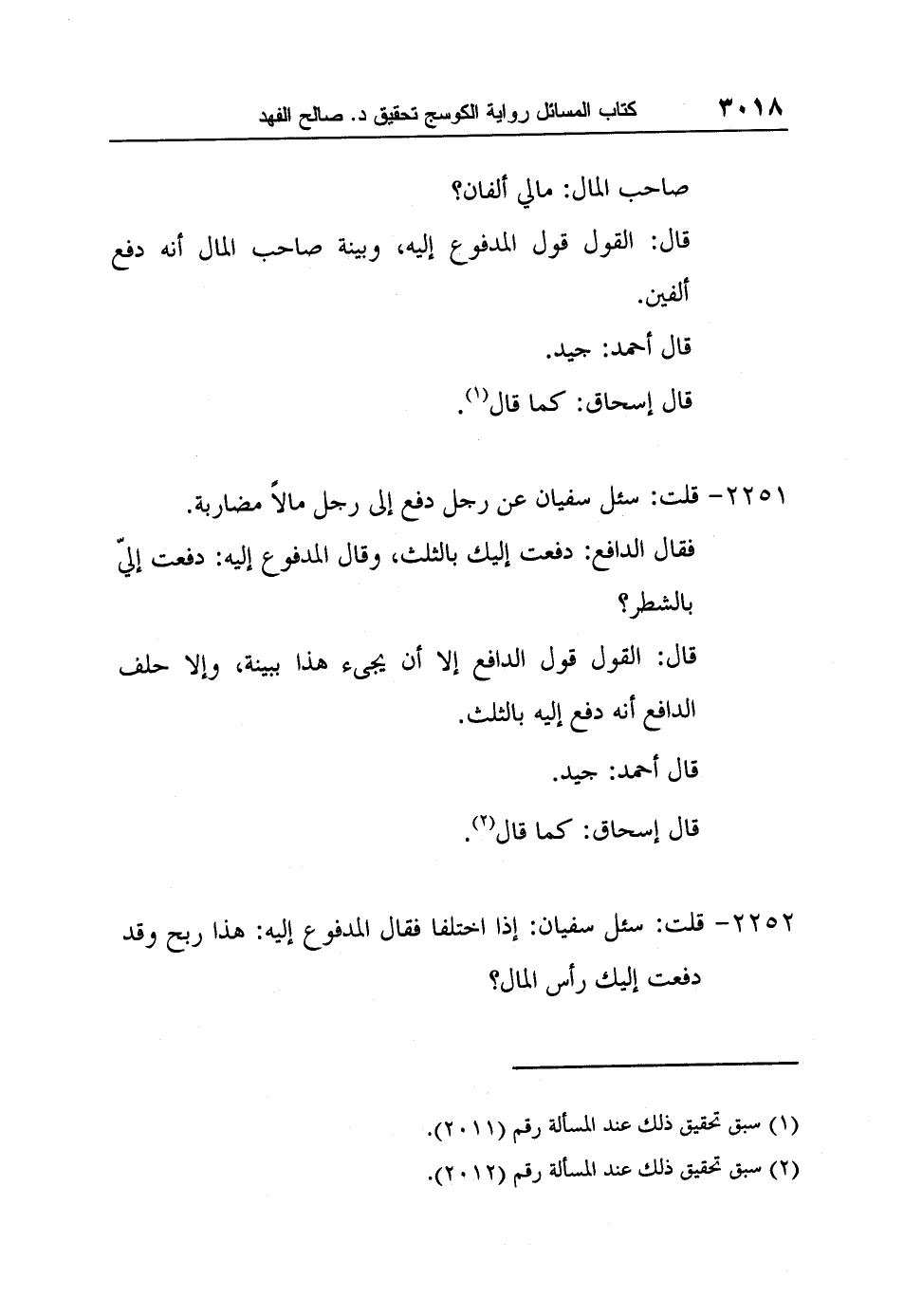 [2251-] قلت: سئل سفيان عن رجل دفع إلى رجل مالاً مضاربة.