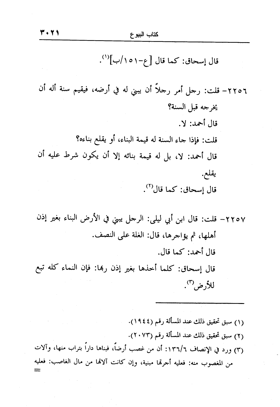 [2257-] قلت: قال ابن أبي ليلى: الرجل يبني في الأرض البناء بغير إذن أهلها، ثم يؤاجرها، قال: الغلة على النصف.
