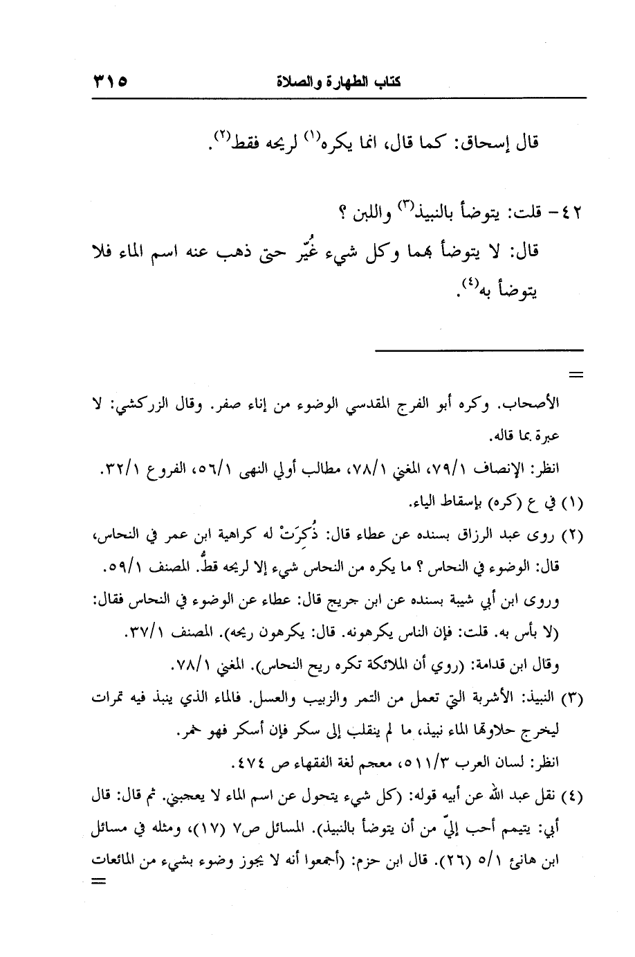 4 نقل عبد الله عن أبيه قوله: (كل شيء يتحول عن اسم الماء لا يعجبني. ثم قال: قال أبي: يتيمم أحب إليّ من أن يتوضأ بالنبيذ) . المسائل ص7 (17) ، ومثله في مسائل ابن هانئ 1/5 (26) . قال ابن حزم: (أجمعوا أنه لا يجوز وضوء بشيء من المائعات وغيرها حاشا الماء والنبيذ) . مراتب الإجماع ص 17. وانظر: الإجماع لابن المنذر ص 32، 33، الأوسط 1/253.
