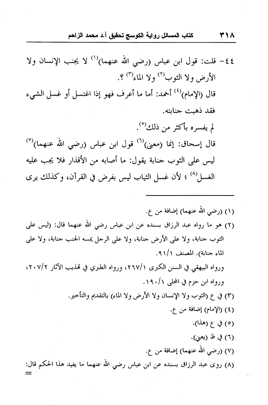 [44-] قلت: قول ابن عباس (رضي الله عنهما) 1 لا يجنب الإنسان ولا الأرض ولا الثوب2 ولا الماء3؟.