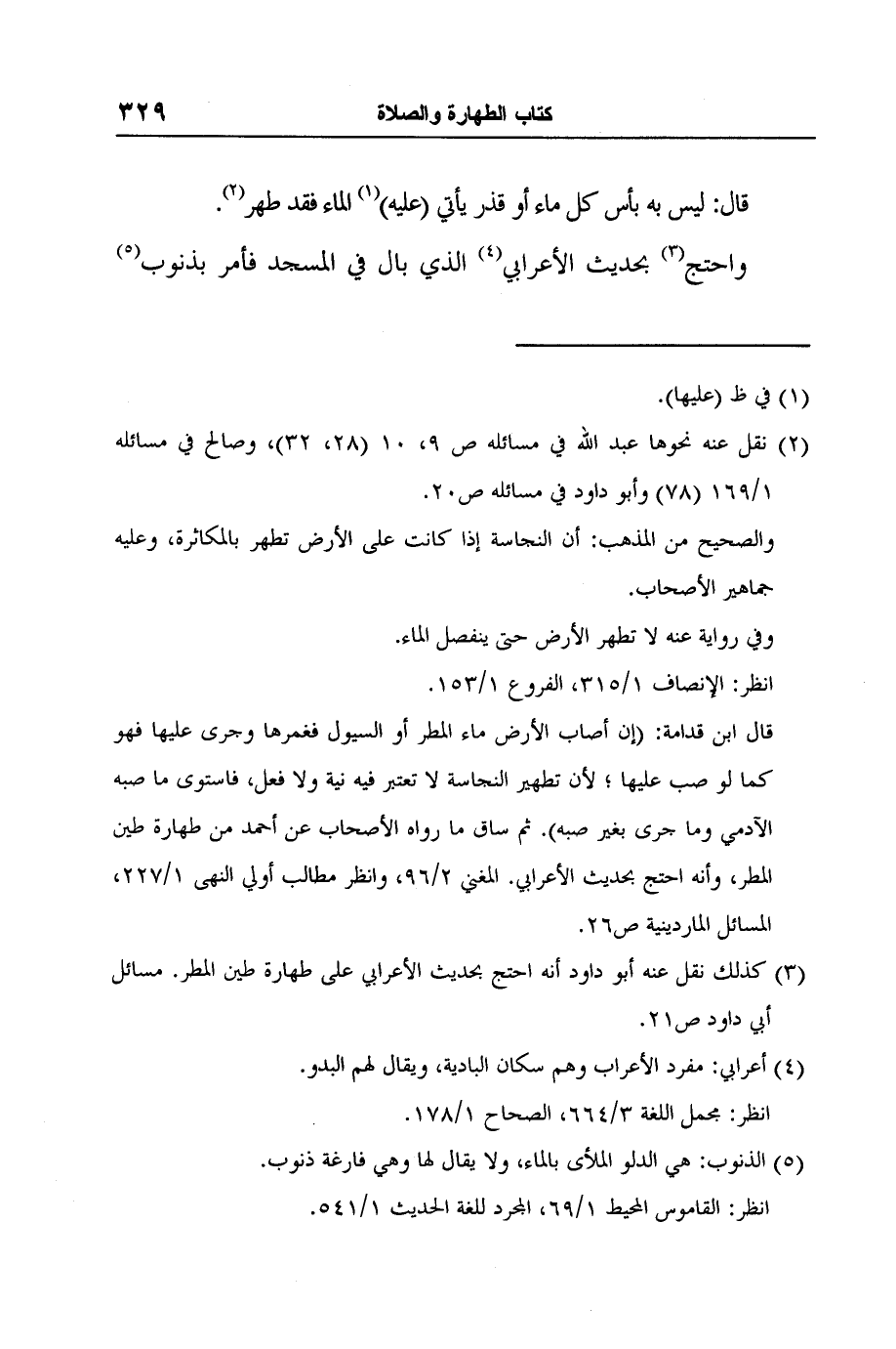 3 كذلك نقل عنه أبو داود أنه احتج بحديث الأعرابي على طهارة طين المطر. مسائل أبي داود ص21.