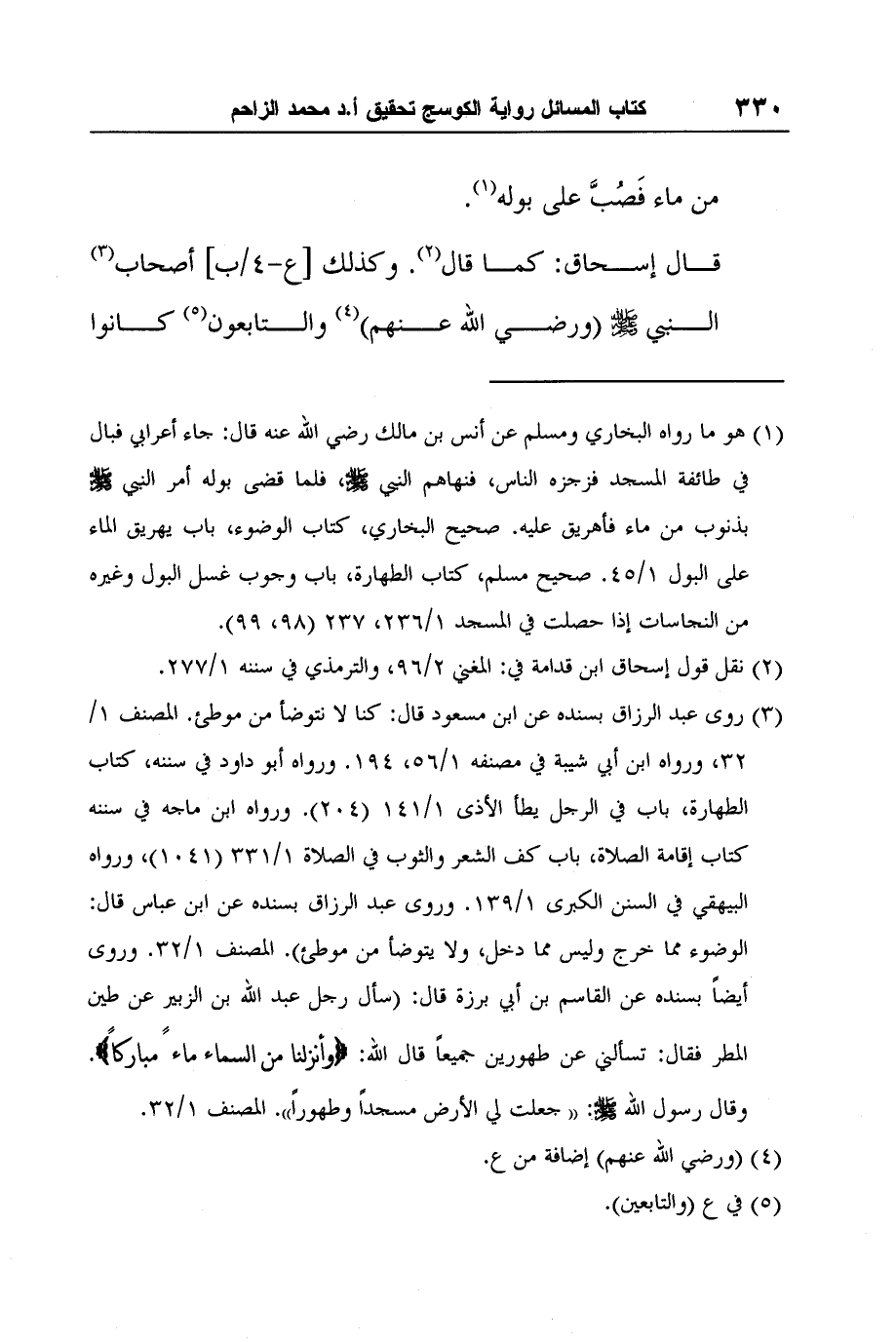 قال إسحاق: كما قال3. وكذلك [ع-4/ب] أصحاب4 النبي صلى الله عليه وسلم (ورضي الله عنهم) 5 والتابعون6 كانوا