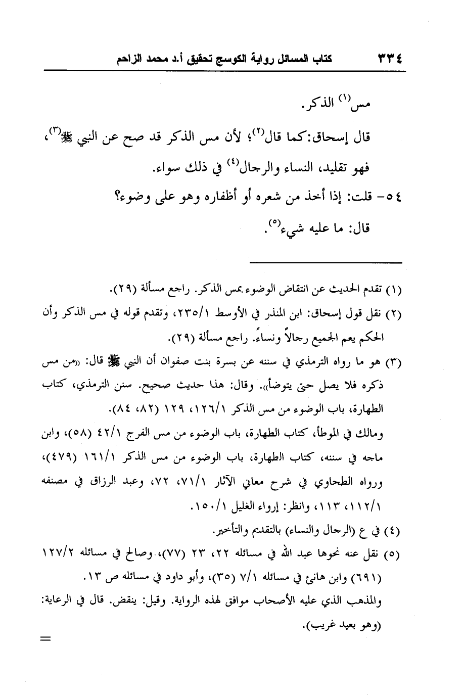 قال إسحاق: كما قال2؛ لأن مس الذكر قد صح عن النبي صلى الله عليه وسلم3، فهو تقليد، النساء والرجال4 في ذلك سواء.
