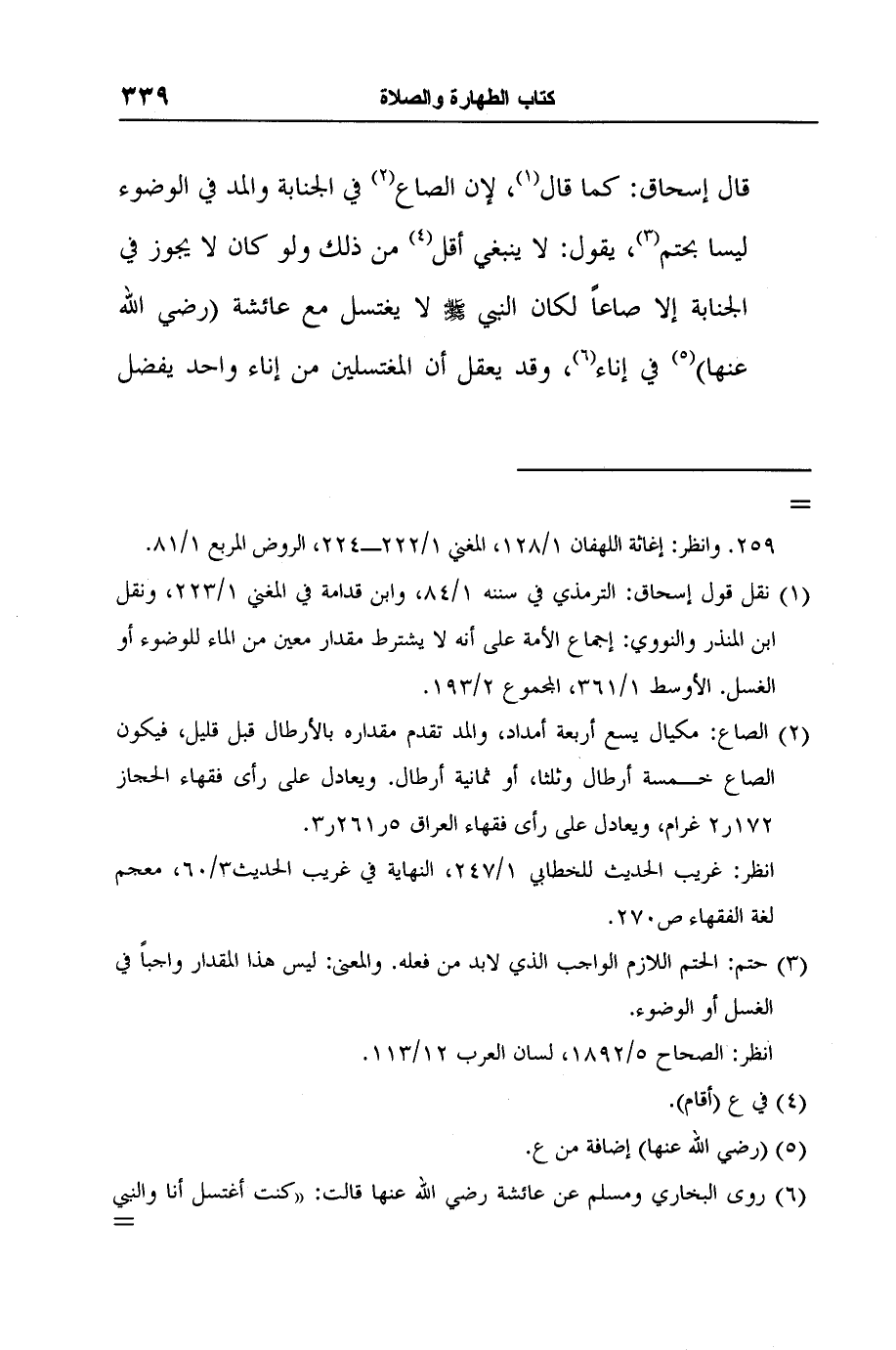 2 الصاع: مكيال يسع أربعة أمداد، والمد تقدم مقداره بالأرطال قبل قليل، فيكون الصاع خمسة أرطال وثلثا، أو ثمانية أرطال. ويعادل على رأى فقهاء الحجاز 172ر2 غرام، ويعادل على رأى فقهاء العراق 5ر261ر3.