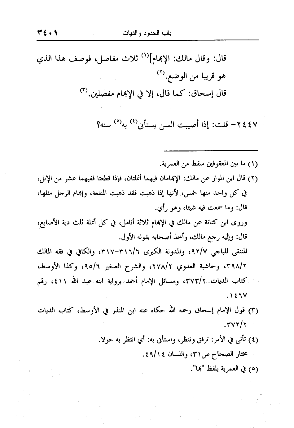 [] المنتقى للباجي 7/92، والمدوّنة الكبرى 6/316-317، والكافي في فقه المالك 2/398، وحاشية العدوي 2/278، والشرح الصغير 6/95، وكذا الأوسط، كتاب الديات 2/373، ومسائل الإمام أحمد برواية ابنه عبد الله 411، رقم 1467.