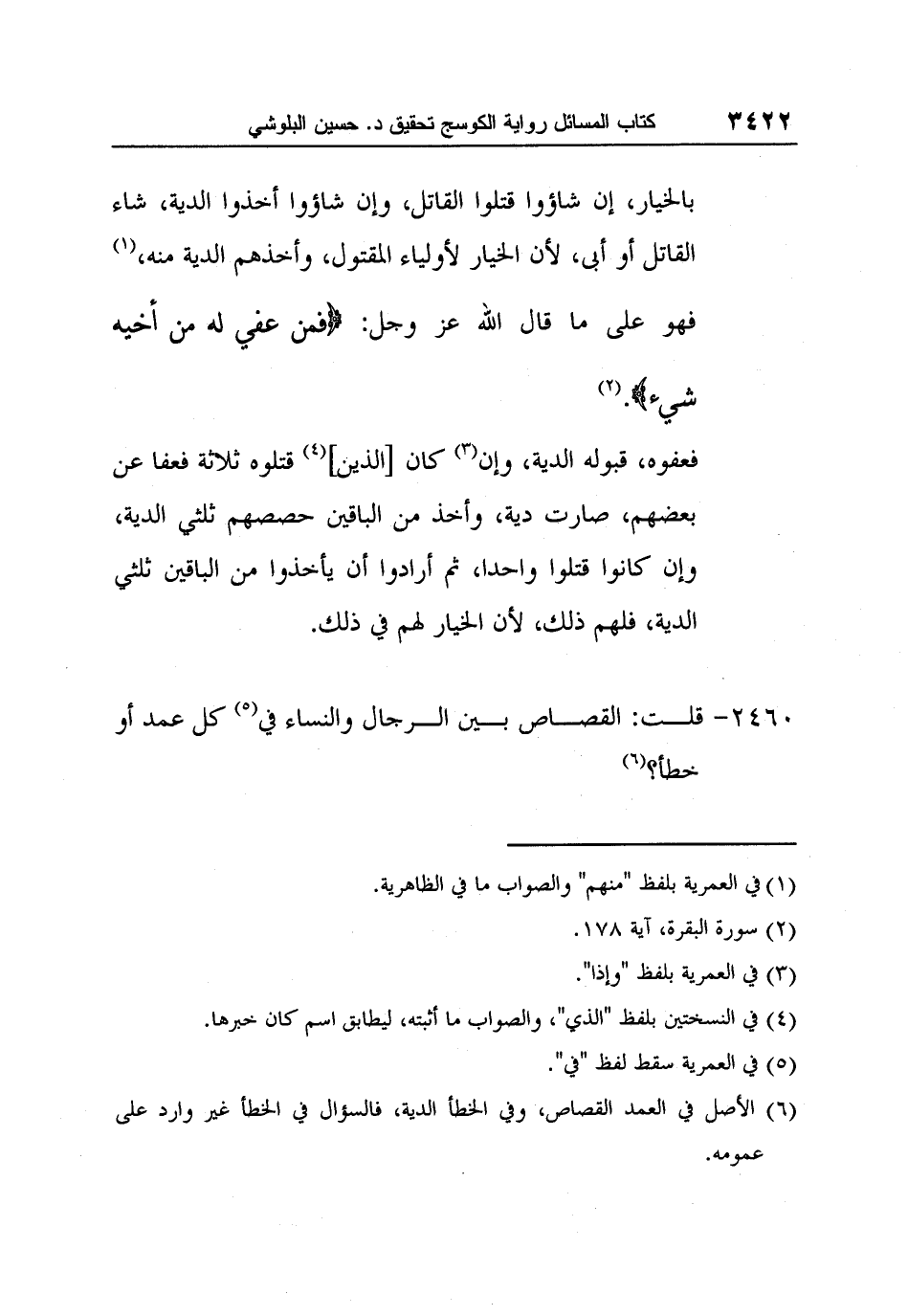 [2460-] قلت: القصاص بين الرجال والنساء في 5 كلّ عمد أو خطأ؟ 6