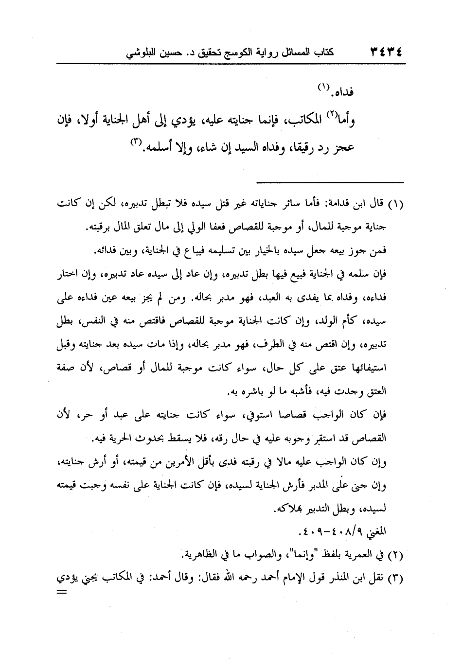 3 نقل ابن المنذر قول الإمام أحمد رحمه الله فقال: وقال أحمد: في المكاتب يجني يؤدي =
