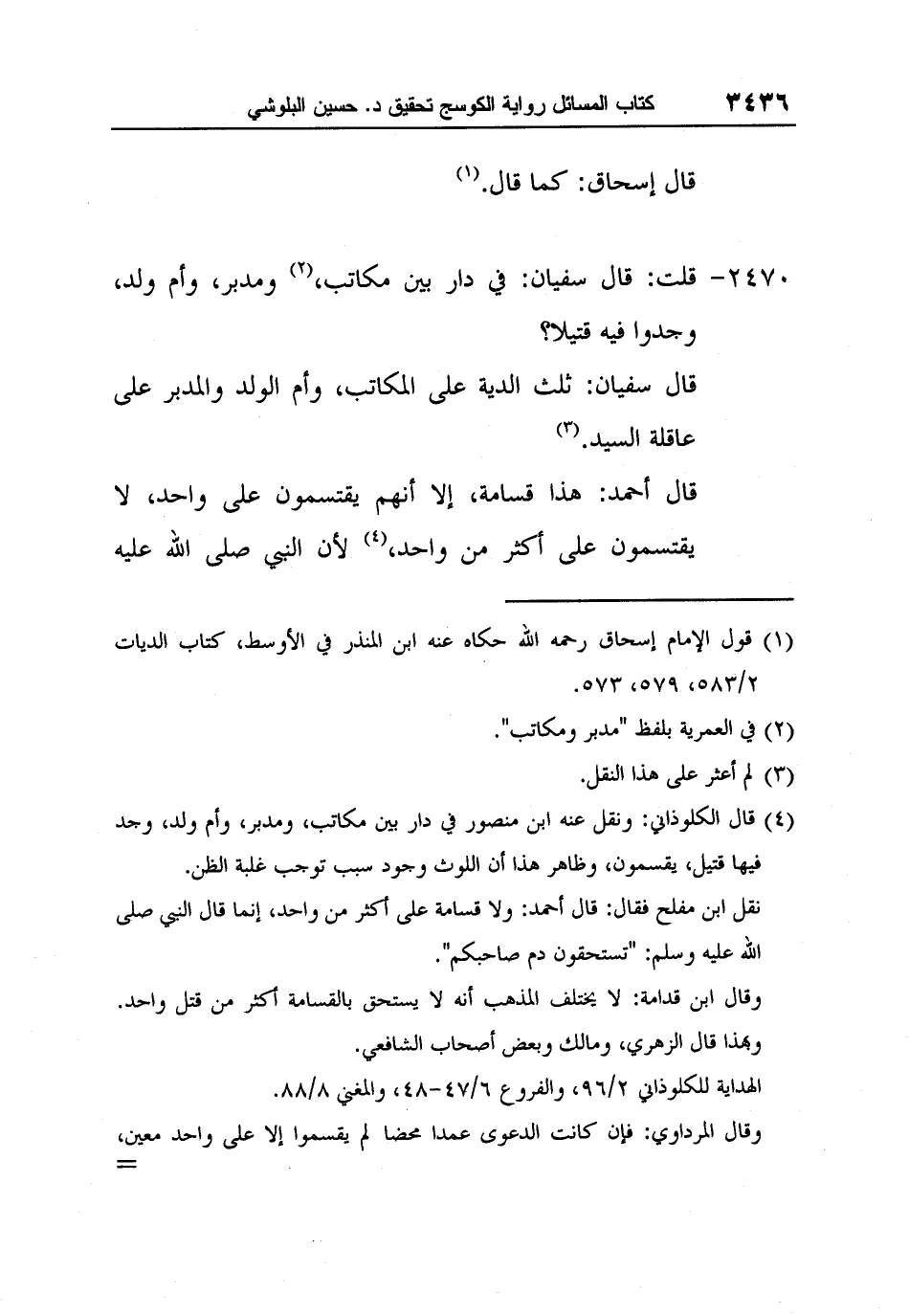 [2470-] قلت: قال سفيان: في دار بين مكاتب، 2 ومدبر، وأمّ ولد، وجدوا فيه قتيلاً؟