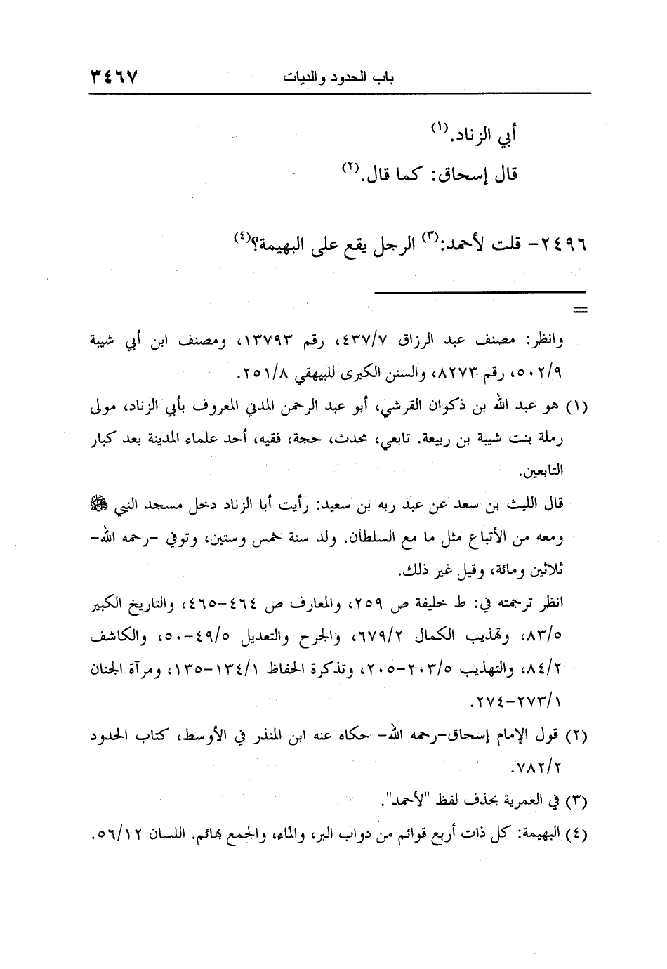 [2496-] قلت لأحمد: 3 الرجل يقع على البهيمة؟ 4