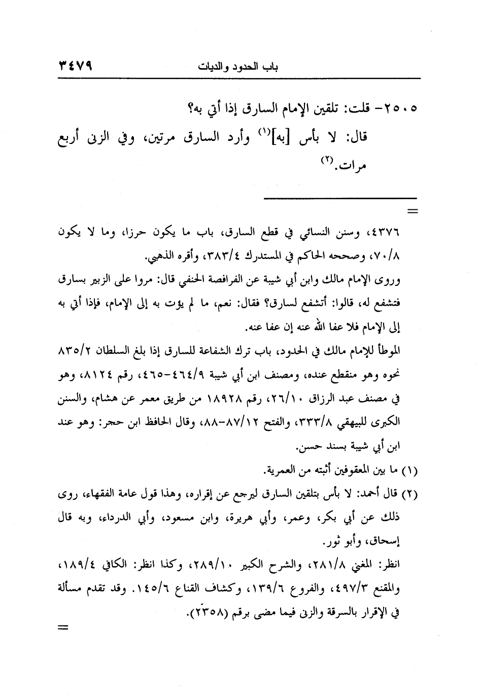 2 قال أحمد: لا بأس بتلقين السارق ليرجع عن إقراره، وهذا قول عامة الفقهاء، روى ذلك عن أبي بكر، وعمر، وأبي هريرة، وابن مسعود، وأبي الدرداء، وبه قال إسحاق، وأبو ثور.