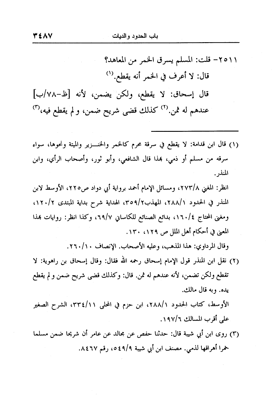 1 قال ابن قدامة: لا يقطع في سرقة محرم كالخمر والخنزير والميتة ونحوها، سواء سرقه من مسلم أو ذمي، بهذا قال الشافعي، وأبو ثور، وأصحاب الرأي، وابن المنذر.