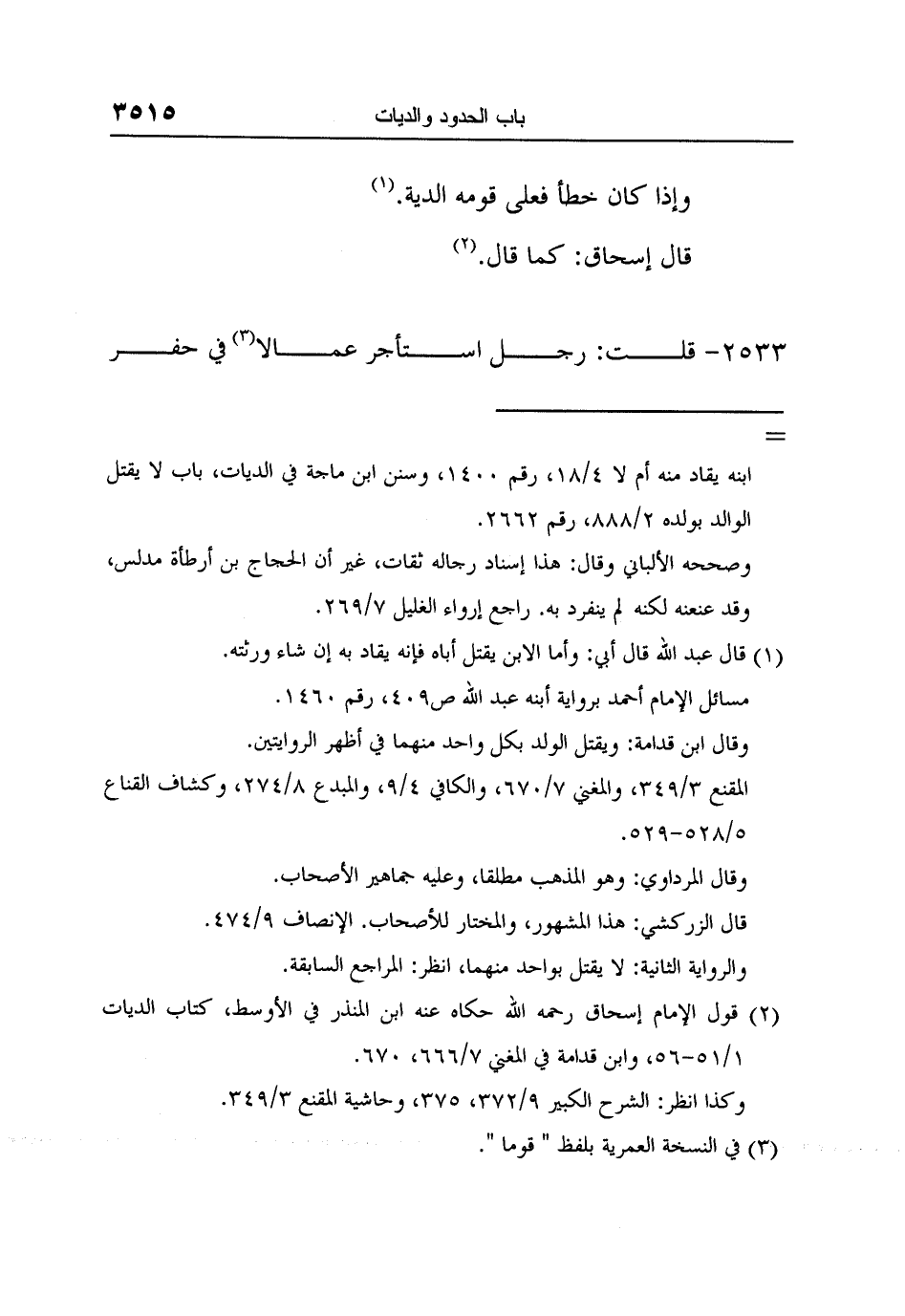 [2] قول الإمام إسحاق رحمه الله حكاه عنه ابن المنذر في الأوسط، كتاب الديات 1/51-56، وابن قدامة في المغني 7/666، 670.