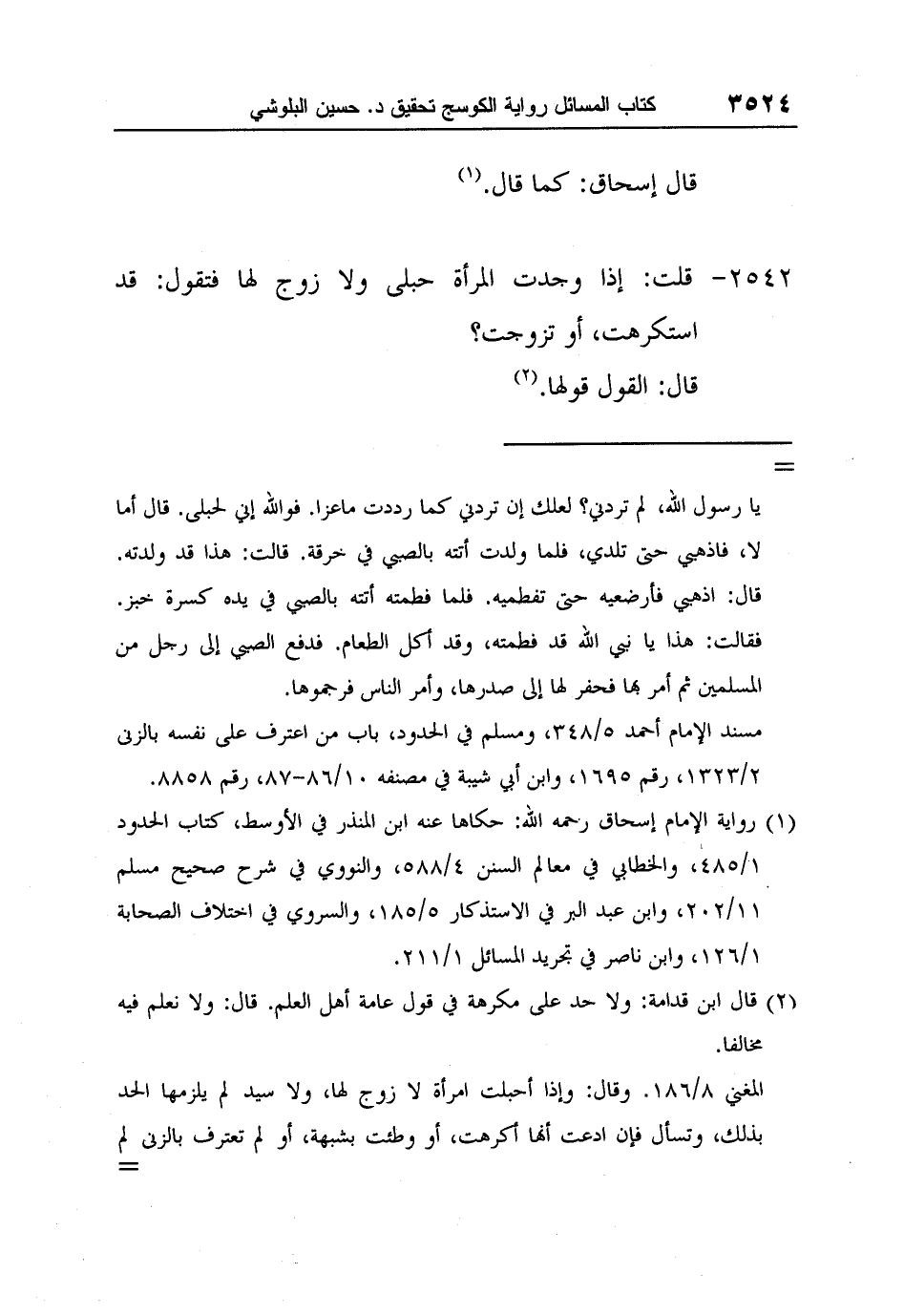 1 رواية الإمام إسحاق رحمه الله: حكاها عنه ابن المنذر في الأوسط، كتاب الحدود 1/485، والخطابي في معالم السنن 4/588، والنووي في شرح صحيح مسلم 11/202، وابن عبد البر في الاستذكار 5/185، والسروي في اختلاف الصحابة 1/126، وابن ناصر في تجريد المسائل 1/211.