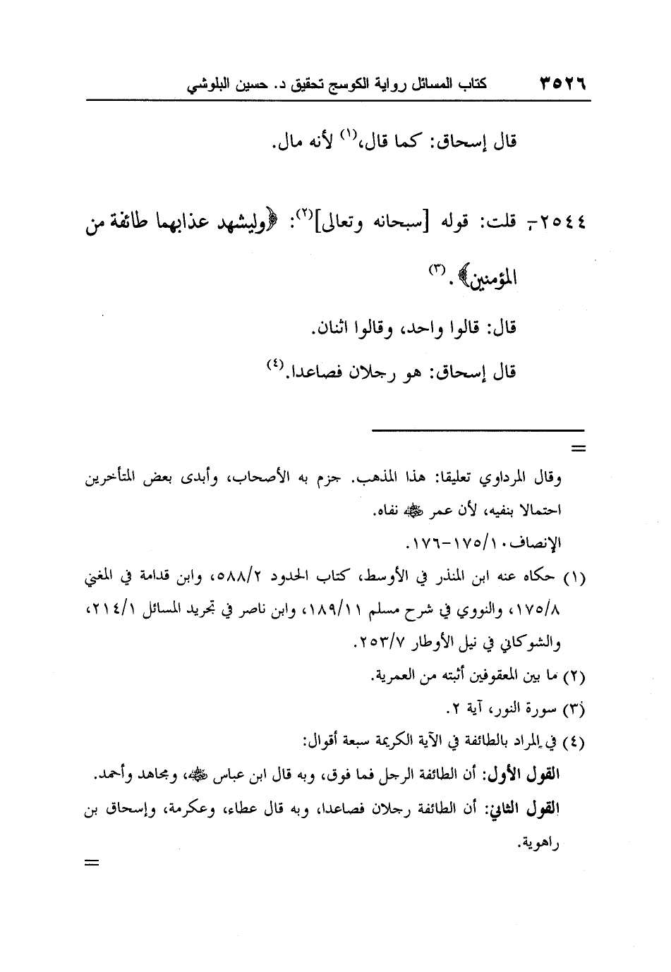 [2544-] قلت: قوله [سبحانه وتعالى] 2: {وَلْيَشْهَدْ عَذَابَهُمَا طَائِفَةٌ مِنَ الْمُؤْمِنِينَ} 3