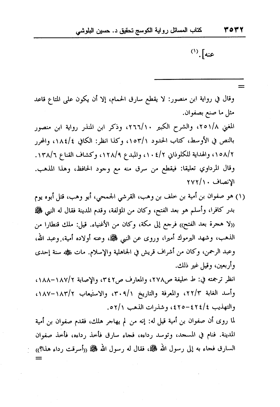 [] وموطأ مالك في الحدود، باب ترك الشفاعة للسارق إذا بلغ السلطان 2/834-835. عن صفوان بن عبد الله بن صفوان (مرسلاً ورجاله ثقات) .