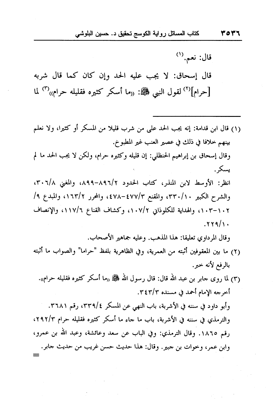 وقال إسحاق بن إبراهيم الحنظلي: إن قليله وكثيره حرام، ولكن لا يجب الحد ما لم يسكر.