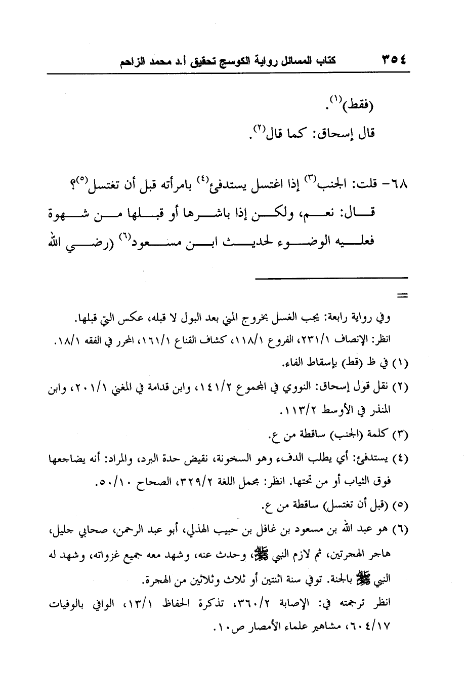 1 نقل عنه نحوها عبد الله في مسائله ص20 (68) ، وصالح في مسائله 1/354، 3/162 (321، 1572) .