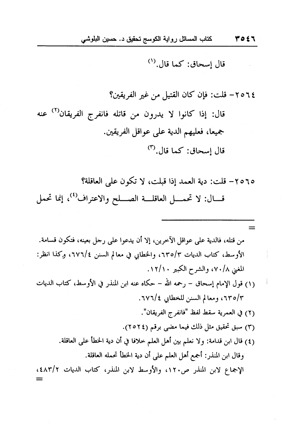 1 قول الإمام إسحاق - رحمه الله - حكاه عنه ابن المنذر في الأوسط، كتاب الديات 3/635، ومعالم السنن للخطابي 4/676.