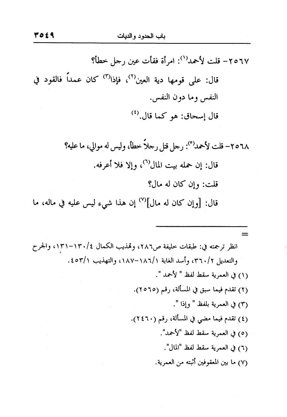[2567-] قلت لأحمد 1: امرأة فقأت عين رجل خطأ؟