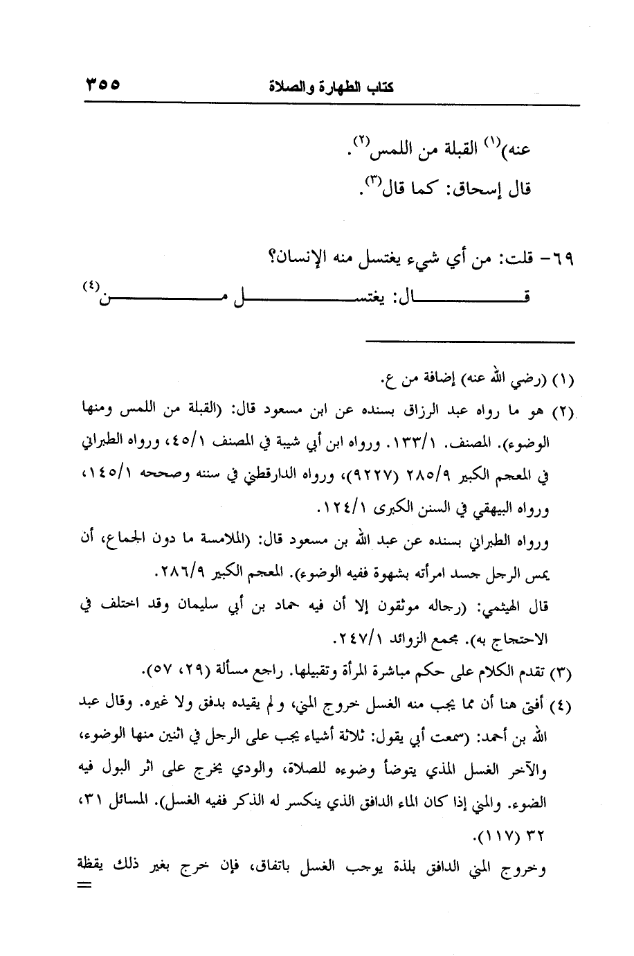 2 هو ما رواه عبد الرزاق بسنده عن ابن مسعود قال: (القبلة من اللمس ومنها الوضوء) . المصنف. 1/133. ورواه ابن أبي شيبة في المصنف 1/45، ورواه الطبراني في المعجم الكبير 9/285 (9227) ، ورواه الدارقطني في سننه وصححه 1/145، ورواه البيهقي في السنن الكبرى 1/124.
