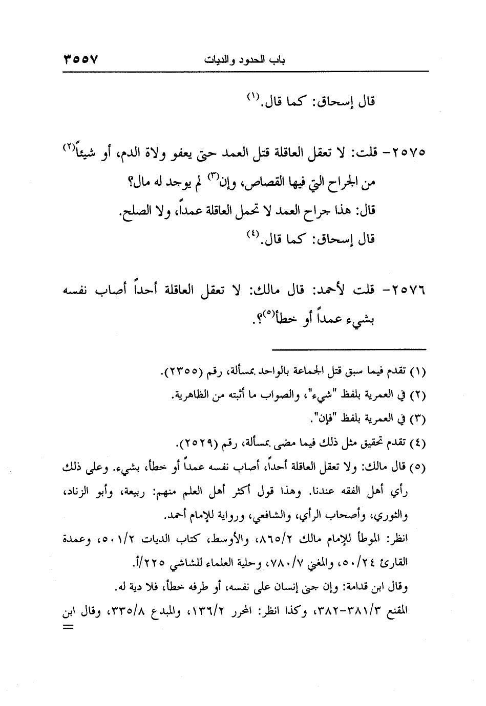 [2576-] قلت لأحمد: قال مالك: لا تعقل العاقلة أحداً أصاب نفسه بشيء عمداً أو خطأ 5؟.