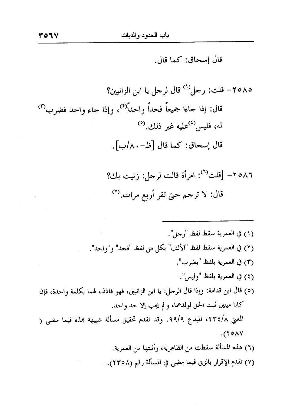 6 هذه المسألة سقطت من الظاهرية، وأثبتها من العمرية.