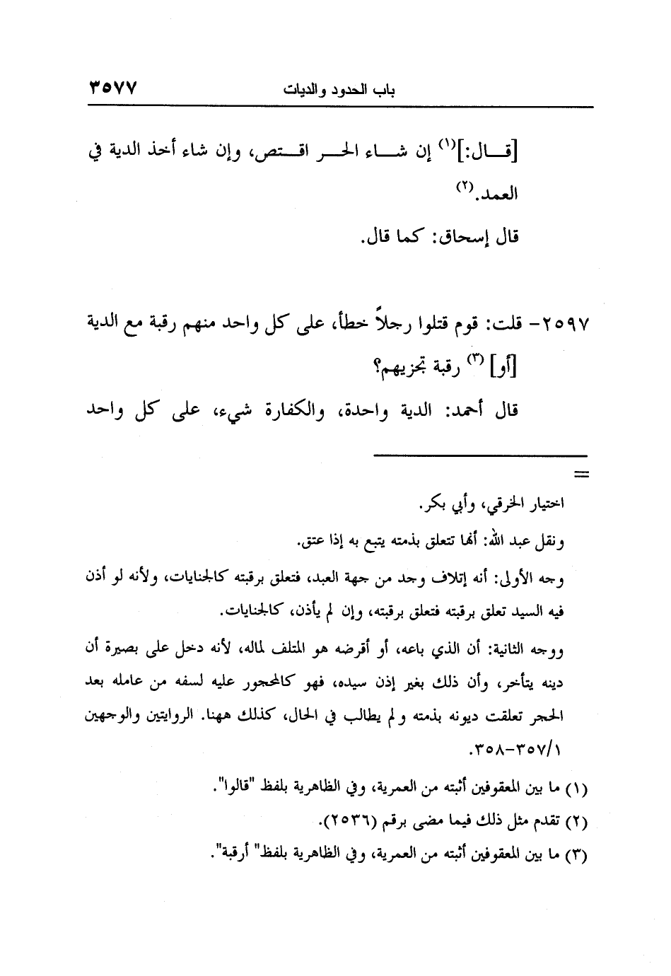 [2597-] قلت: قوم قتلوا رجلاً خطأ، على كل واحد منهم رقبة مع الدية [أو] 3 رقبة تجزيهم؟