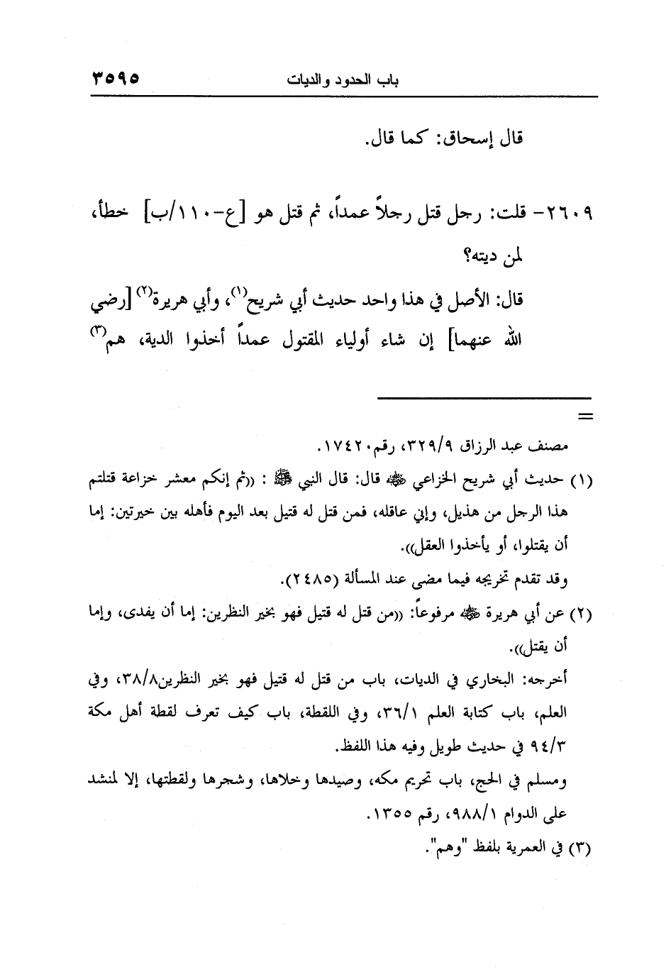 2 عن أبي هريرة رضي الله عنه مرفوعاً: "من قتل له قتيل فهو بخير النظرين: إما أن يفدى، وإما أن يقتل".