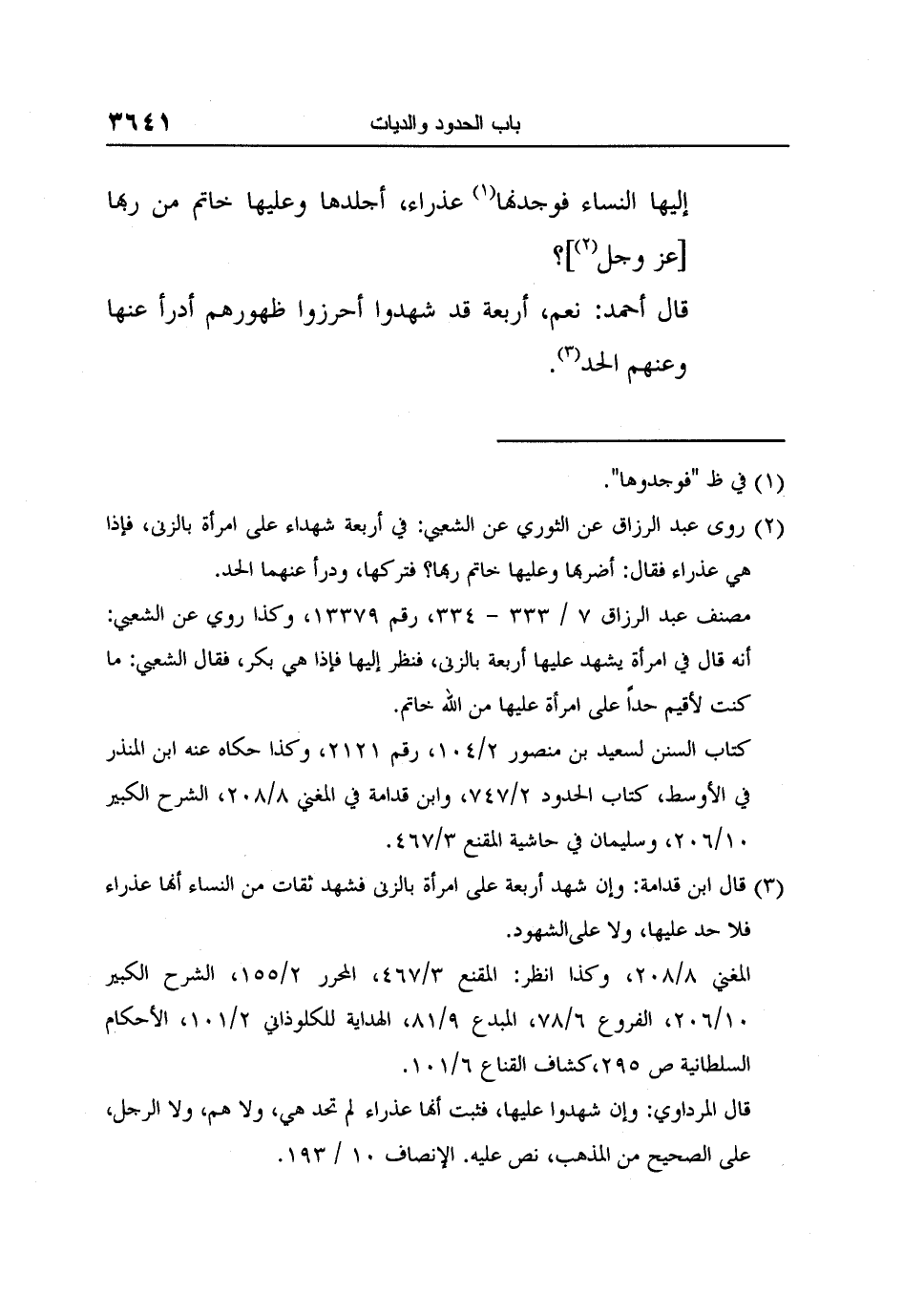 2 روى عبد الرزاق عن الثوري عن الشعبي: في أربعة شهداء على امرأة بالزنى، فإذا هي عذراء فقال: أضربها وعليها خاتم ربها؟ فتركها، ودرأ عنهما الحد.