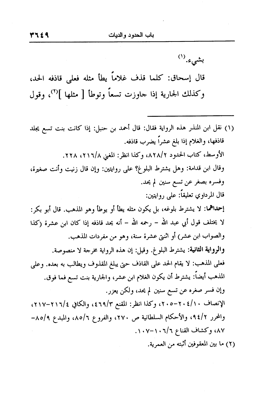 1 نقل ابن المنذر هذه الرواية فقال: قال أحمد بن حنبل: إذا كانت بنت تسع يجلد قاذفها، والغلام إذا بلغ عشراً يضرب قاذفه.