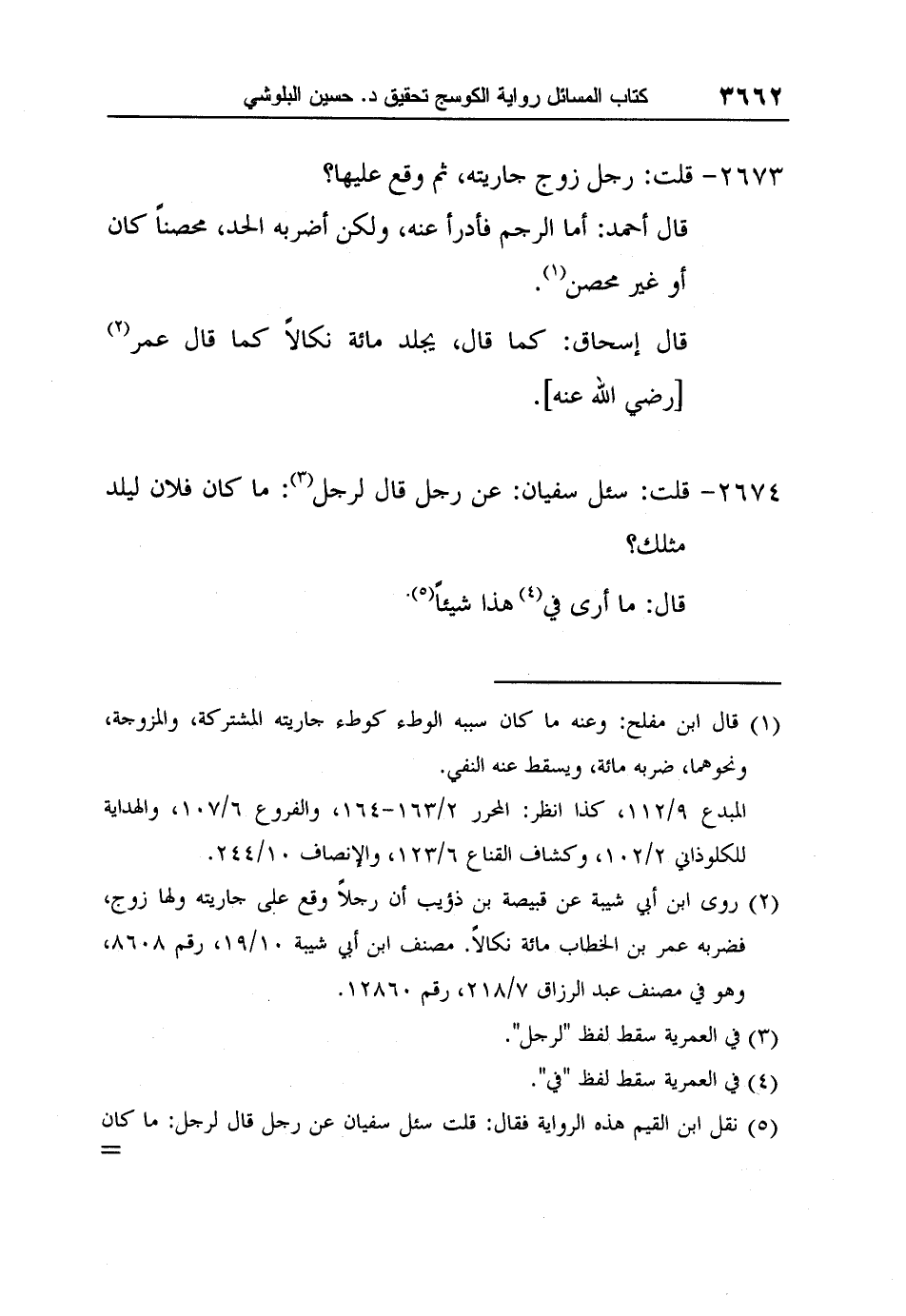 2 روى ابن أبي شيبة عن قبيصة بن ذؤيب أن رجلاً وقع على جاريته ولها زوج، فضربه عمر بن الخطاب مائة نكالاً. مصنف ابن أبي شيبة 10/19، رقم 8608، وهو في مصنف عبد الرزاق 7/218، رقم 12860.