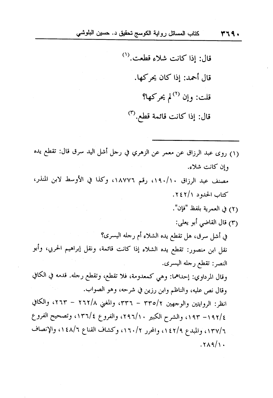 نقل ابن منصور: تقطع يده الشلاء إذا كانت قائمة، ونقل إبراهيم الحربي، وأبو النصر: تقطع رجله اليسرى.