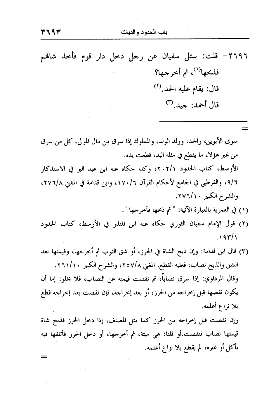 [2696-] قلت: سئل سفيان عن رجل دخل دار قوم فأخذ شاتهم فذبحها 1، ثم أخرجها؟