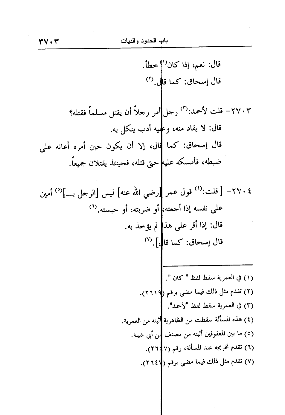 [2703-] قلت لأحمد: 3 رجل أمر رجلاً أن يقتل مسلماً فقتله؟