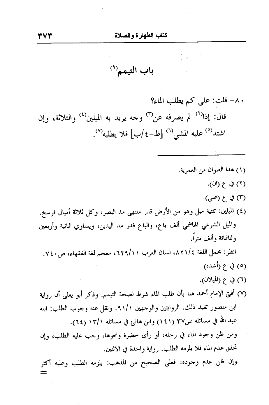7 أفتى الإمام أحمد هنا بأن طلب الماء شرط لصحة التيمم. وذكر أبو يعلى أن رواية ابن منصور تفيد ذلك. الروايتين والوجهين 1/91. ونقل عنه وجوب الطلب: ابنه عبد الله في مسائله ص37 (141) وابن هانئ في مسائله 1/13 (64) .