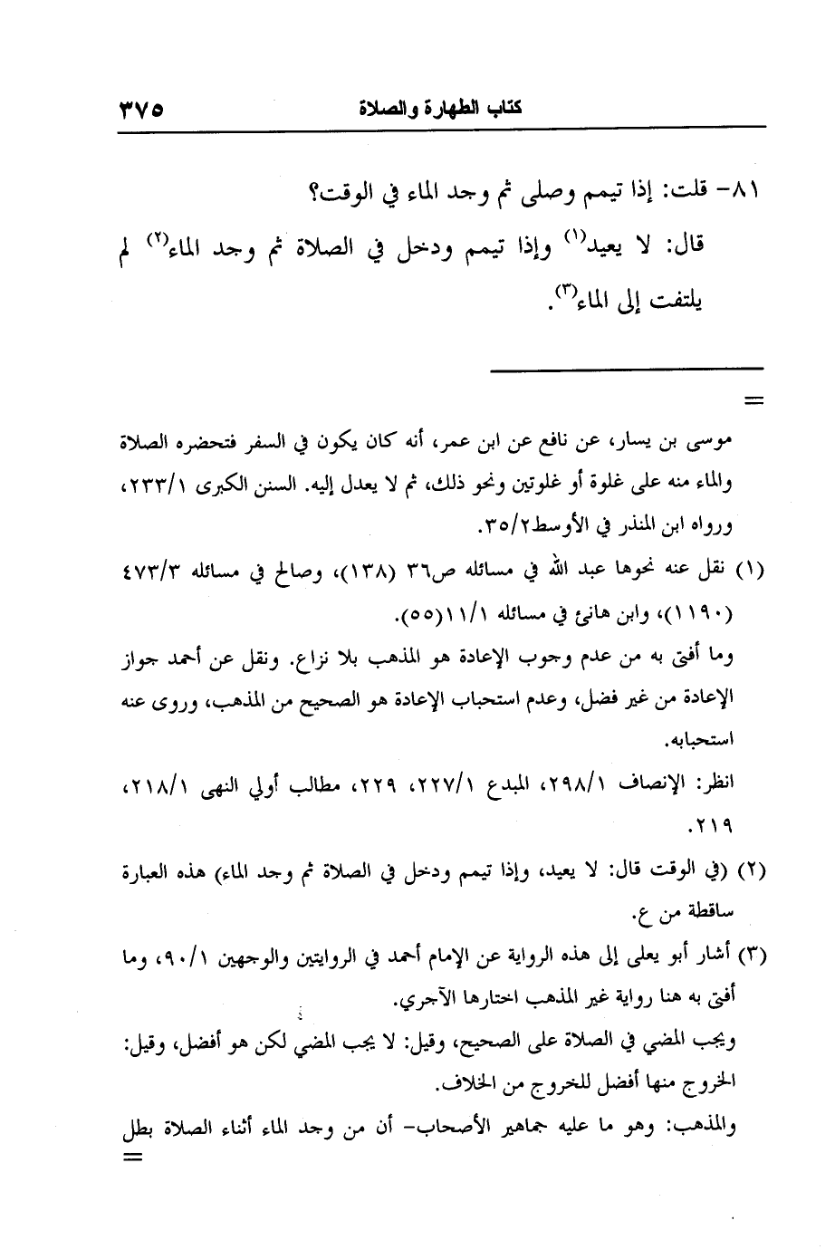 [81-] قلت: إذا تيمم وصلى ثم وجد الماء في الوقت؟