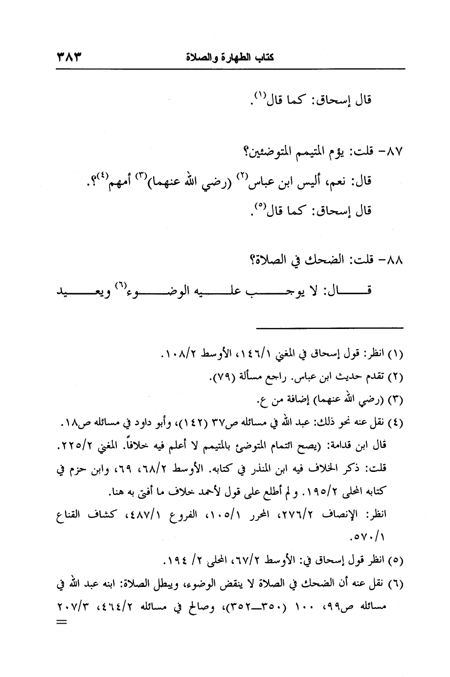 6 نقل عنه أن الضحك في الصلاة لا ينقض الوضوء، ويبطل الصلاة: ابنه عبد الله في مسائله ص99، 100 (350ـ352) ، وصالح في مسائله 2/464، 3/207 (1167، 1661) ، وابن هانئ في مسائله 1/7 (38) ، وأبو داود في مسائله ص13.