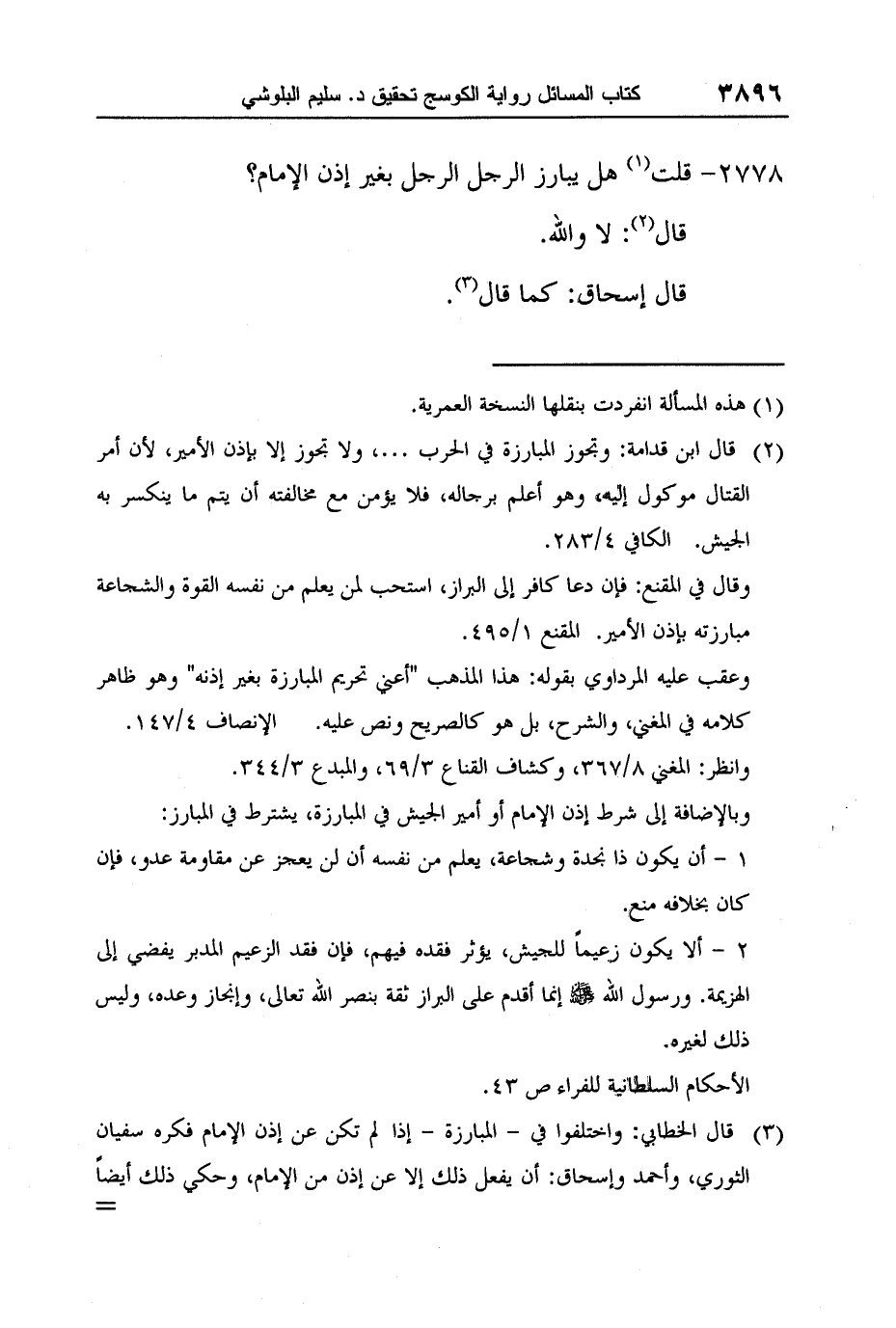[2778-] قلت1 هل يبارز الرجل الرجل بغير إذن الإمام؟