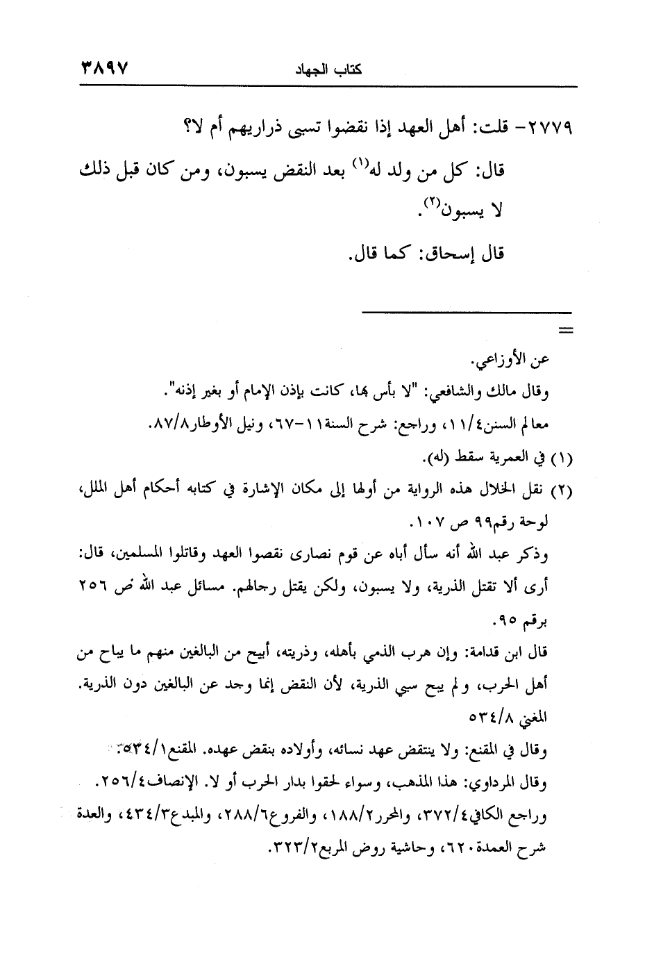 وذكر عبد الله أنه سأل أباه عن قوم نصارى نقصوا العهد وقاتلوا المسلمين، قال: أرى ألا تقتل الذرية، ولا يسبون، ولكن يقتل رجالهم. مسائل عبد الله ص 256 برقم 95.
